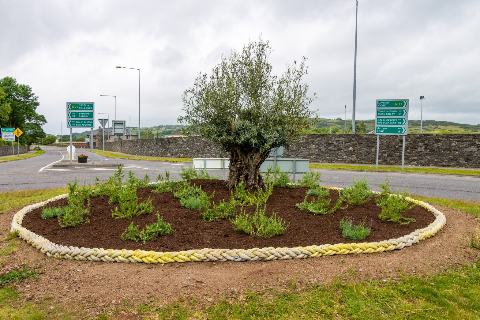 The roundabout planting theme is based on Mediterranean plants, olive (peace and friendship), creeping rosemary (religious legend is tied to Mary, the Mother of Jesus) and lavender (valued for its fragrance and healing properties). All the plants selected can be used in cooking and celebrate all the amazing food being grown and produced in West Cork. In the years ahead, many people travelling to enjoy ‘A Taste of West Cork’ food festival events will also pass this roundabout on their culinary journey.