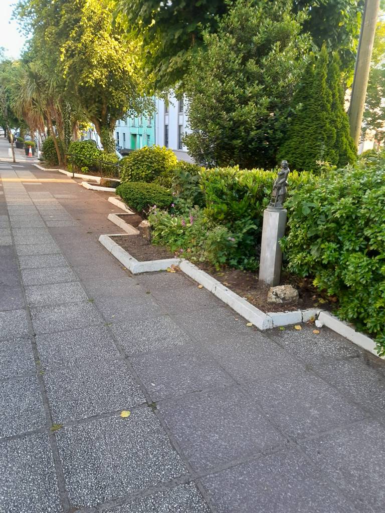 A difficult category to write about at the end of a long winter, we were able to include entries related to progress in a number of public spaces, for example, Our Lady’s Grotto, where volunteer work continues led by the dynamic John Deasy, with the support of Cork County Council. The damaged hoarding at the former Convent of Mercy development site was replaced in August 2023, and the burial ground of the Sisters of Mercy in the grounds of the former chapel are maintained annually by Tidy Towns volunteers ahead of the blessing of the graves in this location. Since the public realm improvements were completed in the Square with its historical Maid of Erin in 2022, this is a popular area to sit and people-watch for many.